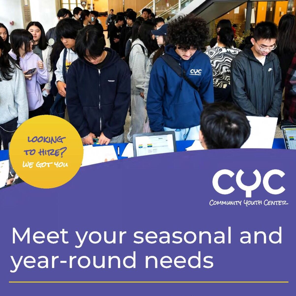 Unlock new career opportunities at the Community Youth Center (CYC) Job Fair on Oct 15, 1–5pm! Connect with employers, boost your resume, practice interviews, refresh your professional look, and get headshots—all in one place. Don’t miss out!